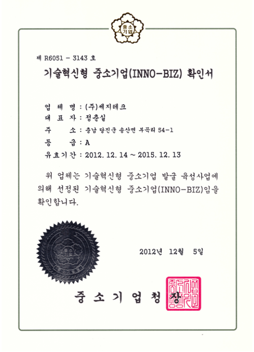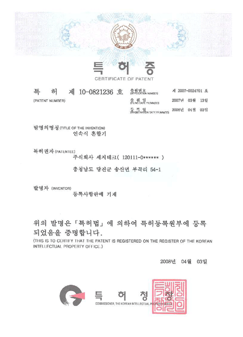 • ¼¼ÁöÅ×Å© ºÐü ±â¼ú ¿¬±¸¼Ò(ÀÎÁ¤¹øÈ£ : Á¦ 20041832È£)