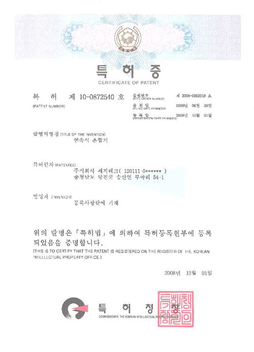 • ISO 9001:2008/KS ISO 9001:2009 (È¥ÇÕ±â, °ÇÁ¶±âÀÇ ¼³°è, °³¹ß, Á¦Á¶ ¹× ¼ºñ½º)